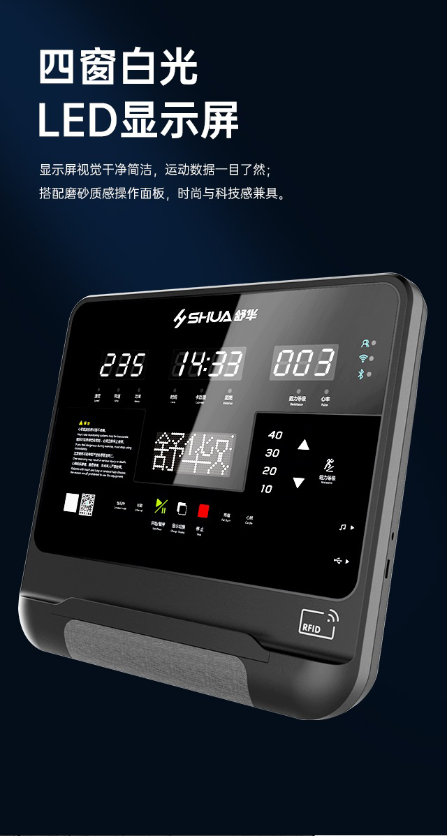 舒华高端必威手机在线登录-必威(中国) SH-T9100T(V10+)拥有超大高清32寸10点触控晶屏的工业屏,具有扫码、刷卡、人脸识别等多种智能登录方式,方便快捷,并且有在线教学、专业健身模式随意切换,让您开启科学健身。
