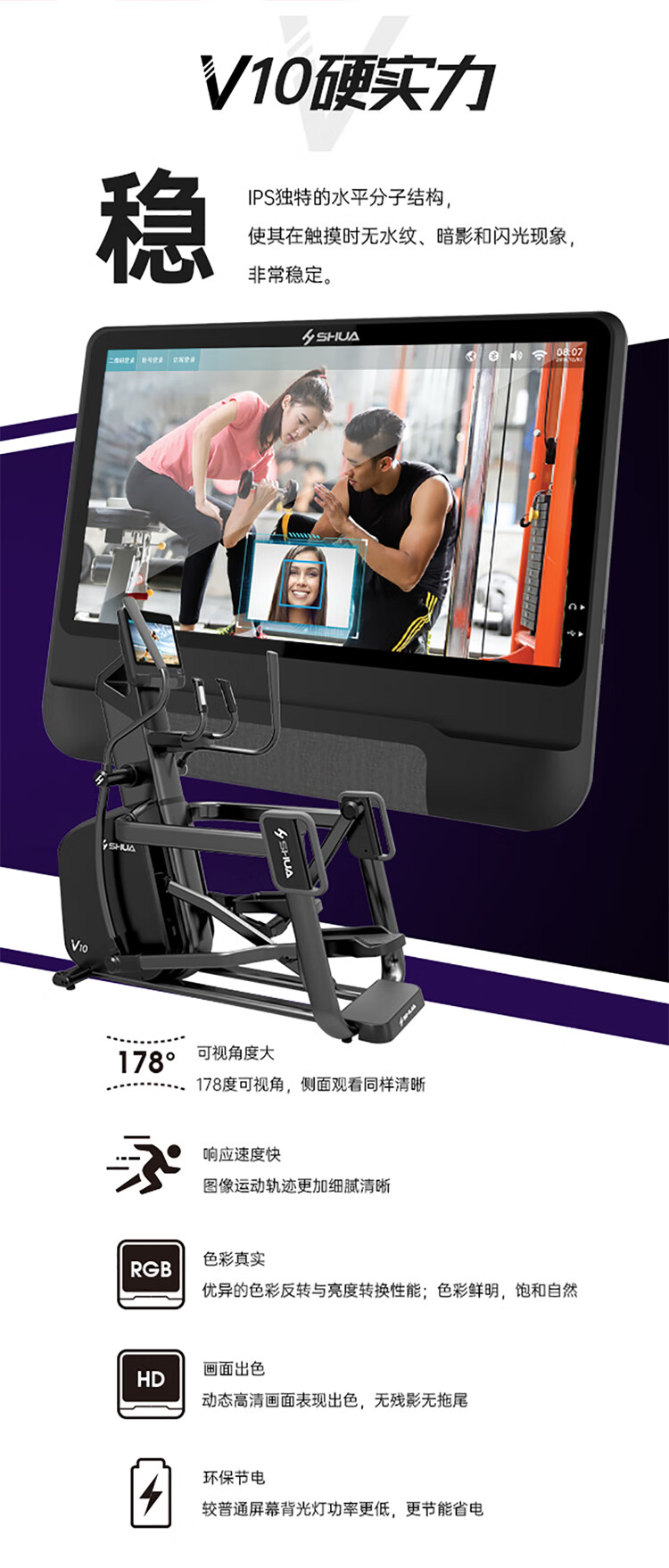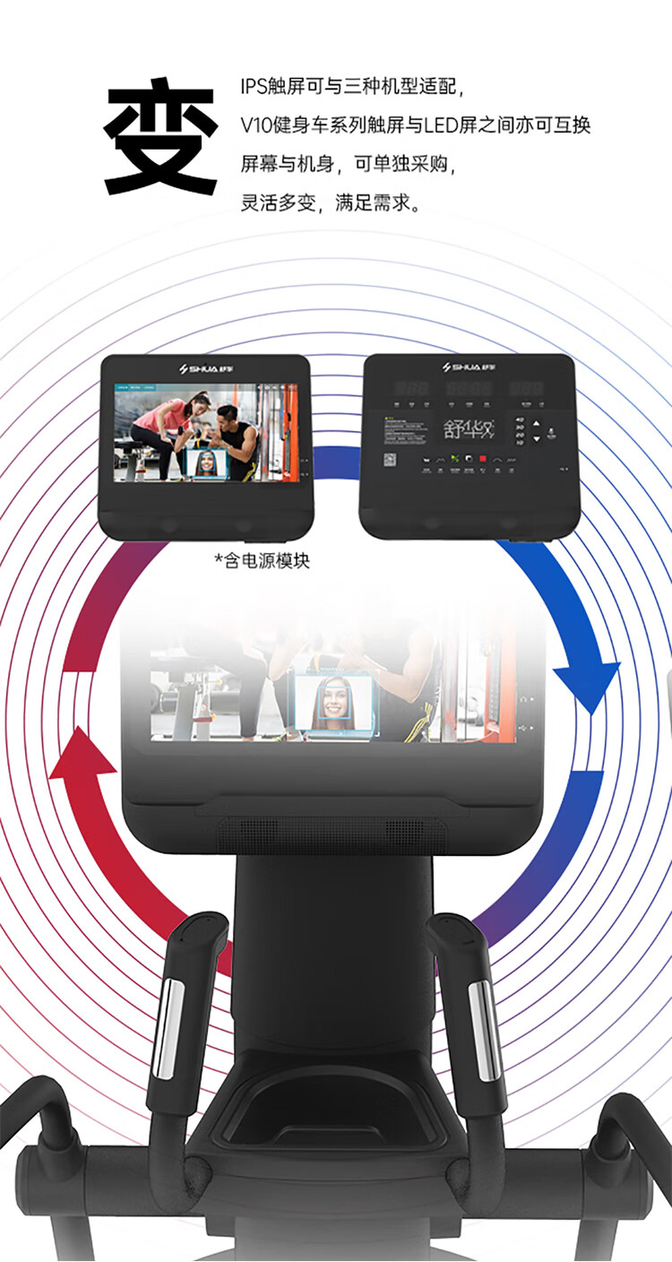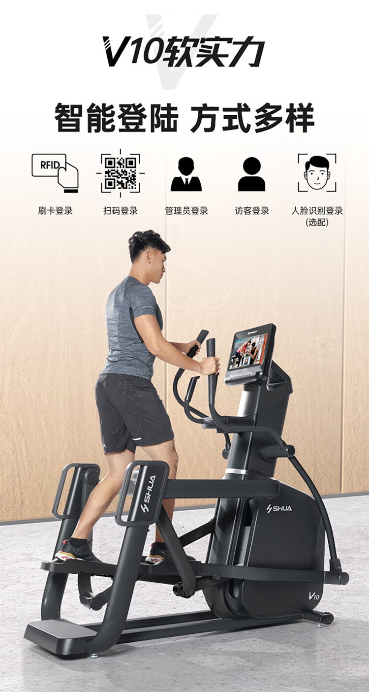 舒华高端必威手机在线登录-必威(中国) SH-T9100T(V10+)拥有超大高清32寸10点触控晶屏的工业屏,具有扫码、刷卡、人脸识别等多种智能登录方式,方便快捷,并且有在线教学、专业健身模式随意切换,让您开启科学健身。