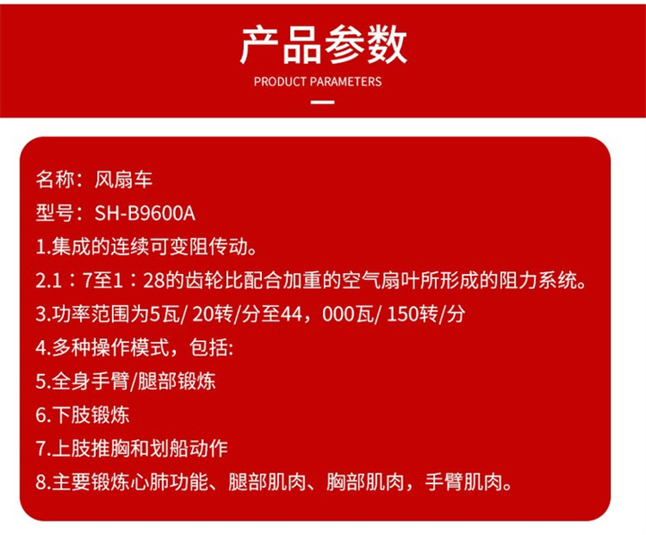 舒华卧式商用健身车SH-B9100U(V10)采用自发电,40段电磁控阻力系统,9.3kg飞轮重量。