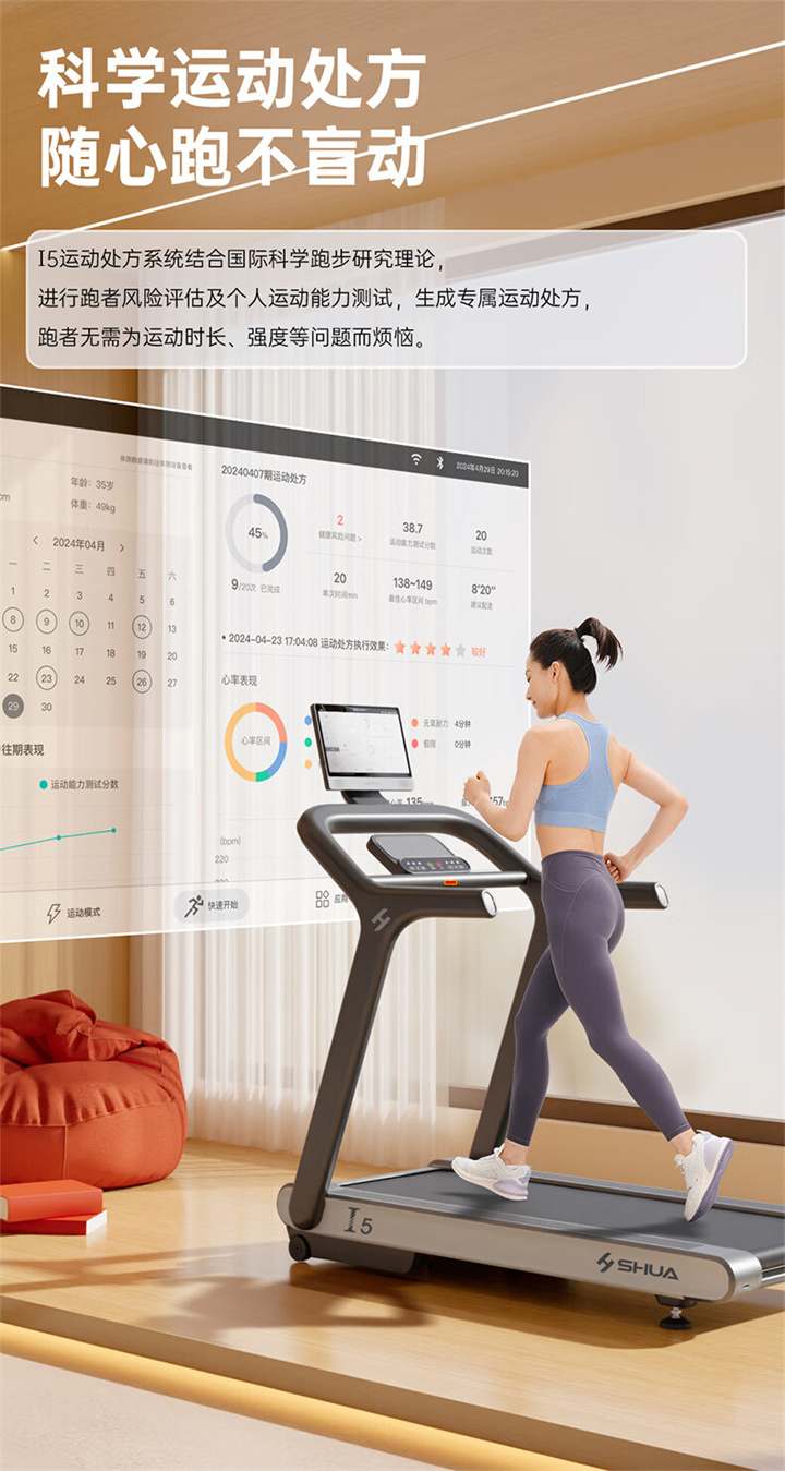 舒华I5智能家用必威手机在线登录-必威(中国) 是由舒华体育联合中国体育科学学会、上海体育大学运动科学学院教授陆大江等权威机构、专家共同研发设计。独特之处在于它结合国际科学跑步研究理论,能够针对不同用户进行运动能力测试,并根据测试结果生成因人而异的有氧运动处方。这意味着每个用户都能得到一个适合自己的运动方案,从而更好地达到运动效果。这一创新技术可以确保用户在运动过程中能够保持在最佳的区间状态,从而提高运动安全性和有效性。